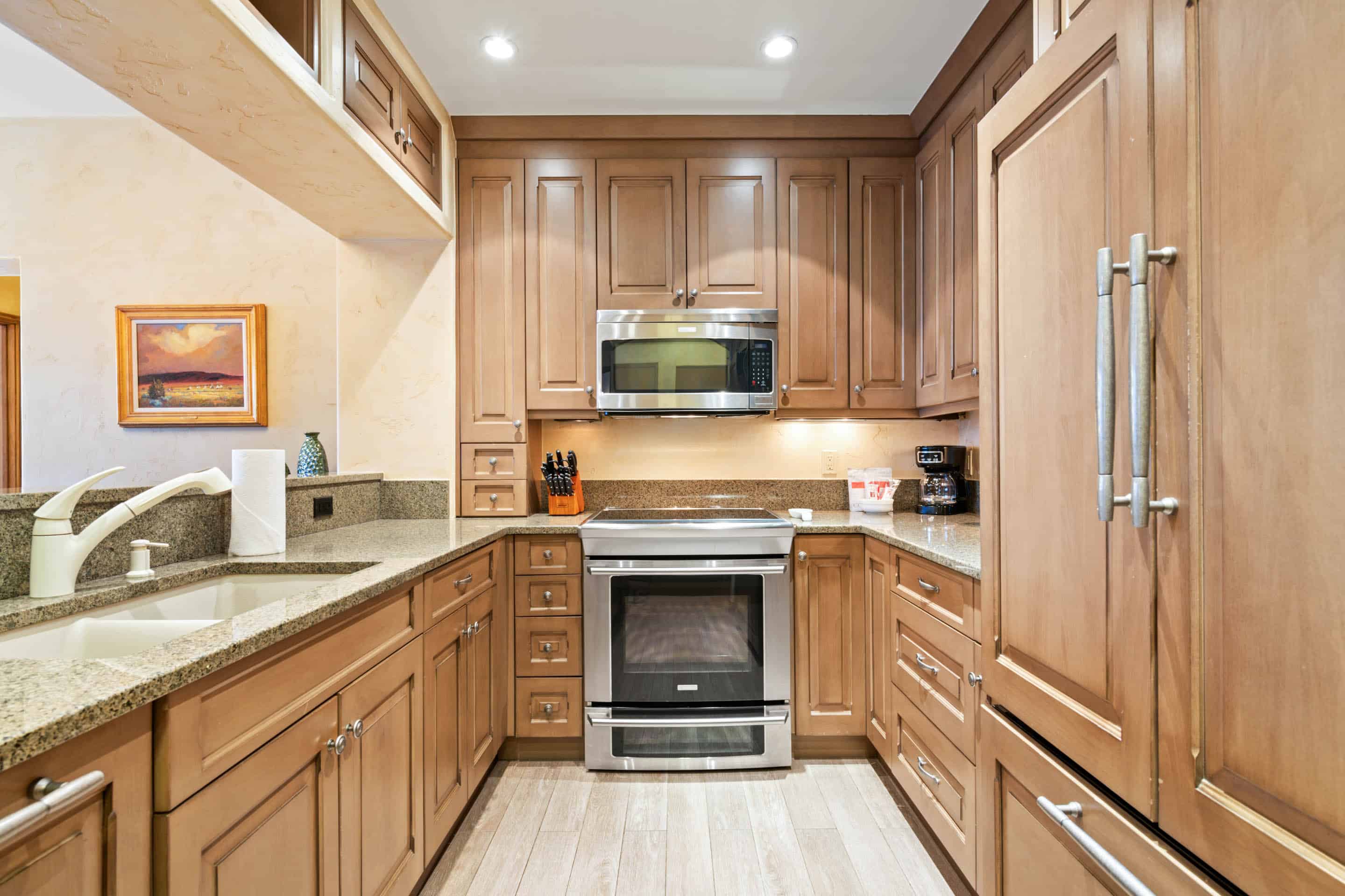 This brilliant, ski-in/ski-out retreat, steps from the Elkhorn Lift, offers a family room with a gas fireplace, a state-of-the-art kitchen with stainless steel appliances, granite countertops and custom cabinetry, plus a dining table for four. Additional features include a primary suite with a king size bed and lavish, attached bathroom, a guest bedroom with two twin beds and a desk/work space, hardwood flooring, ceiling fans, cozy faux paint throughout, a stacked washer/dryer, and underground parking for one vehicle.